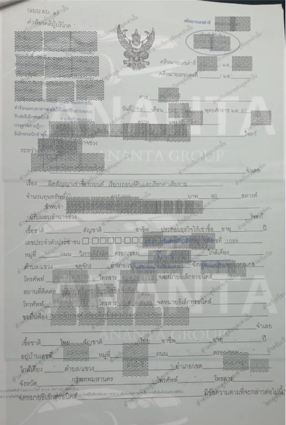 3.ยกเลิกสัญญา แล้ว สำนักงานกฎหมาย ก็เริ่มดำเนินการฟ้อง ยื่นศาล จะประทับรับฟ้อง